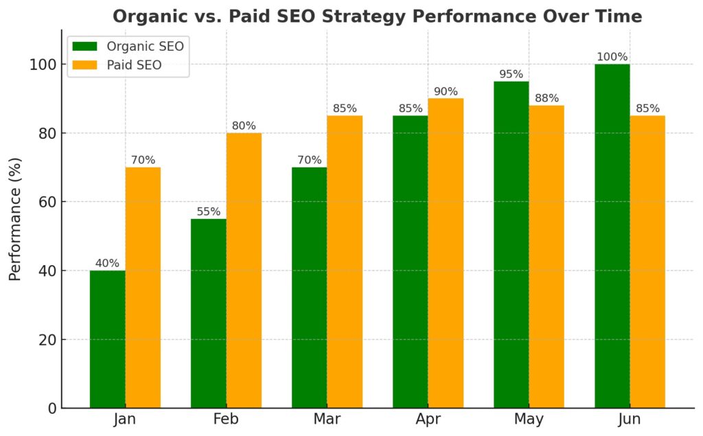 - Paid SEO shows immediate results, but its benefits diminish once the spending stops.